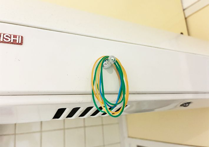 後は、物をマグネットに引っかけて収納します。筆者は、使用頻度の高い輪ゴムの収納として使いました。
