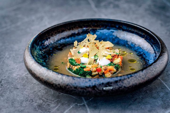 洗練を極めた新鮮なウェルネス・キュイジーヌ。すべてグルテンフリーで、白砂糖不使用など徹底した配慮がなされている。 写真提供=Zulal Wellness Resort by Chiva-Som