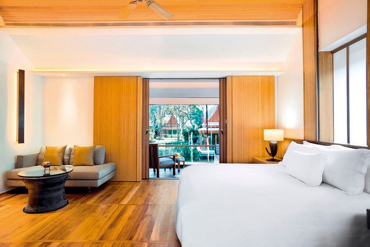 タイ王室の避暑地として名高いホアヒンは、海に面したリゾート地。どの部屋も温かみのある雰囲気でリラックスできる。熱帯植物の庭園に囲まれた敷地内には、タイの伝統的な建築様式を用いたパビリオンスイートが点在。 写真提供=Chiva-Som Hua Hin