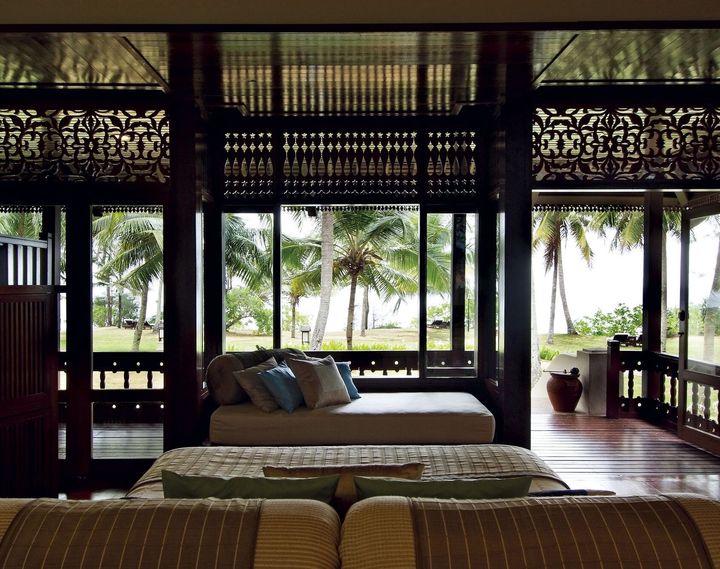 人気の客室「アンジュンルーム」は、1棟を中央で仕切ったセミデタッチドタイプの平屋。窓とドアを開放すると、ベランダまで見渡すことができる。 写真提供=Tanjong Jara Resort