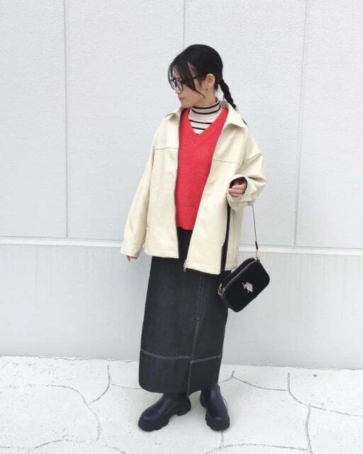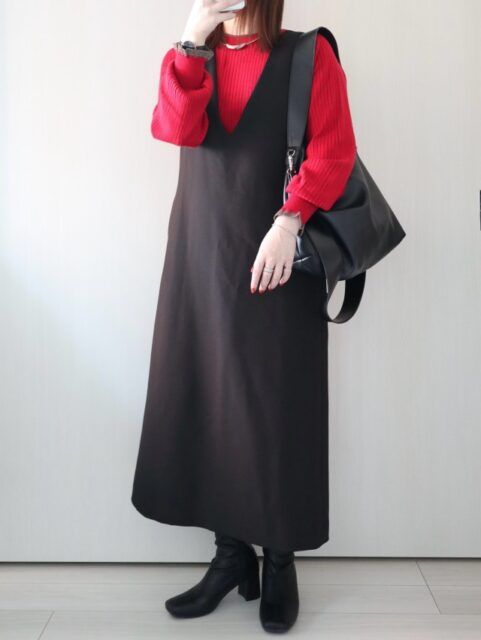 ※スナップで着用している赤ニットのブランドは>>UNIQLO(ユニクロ)