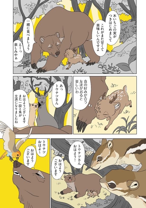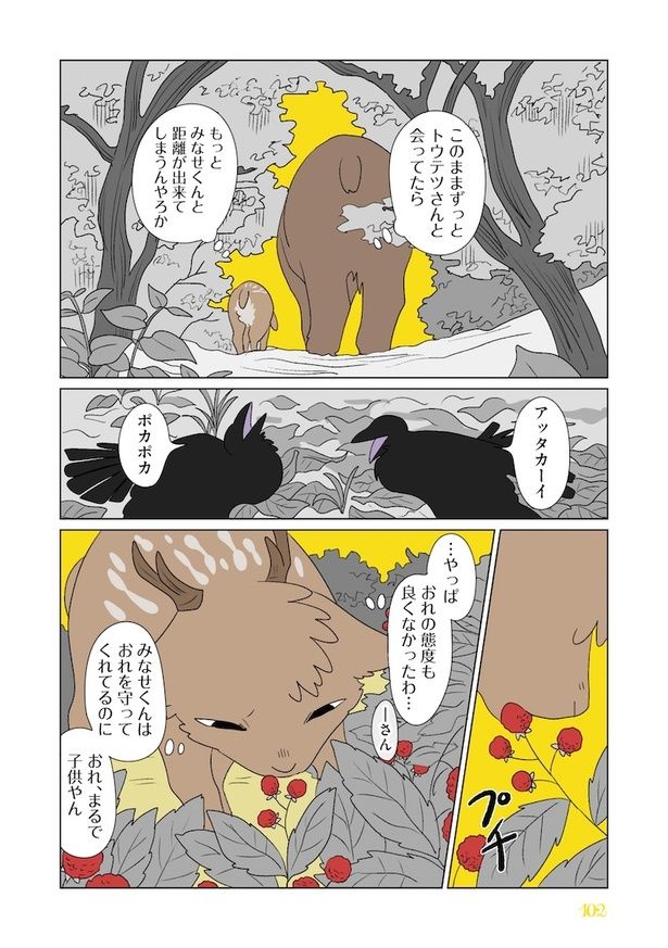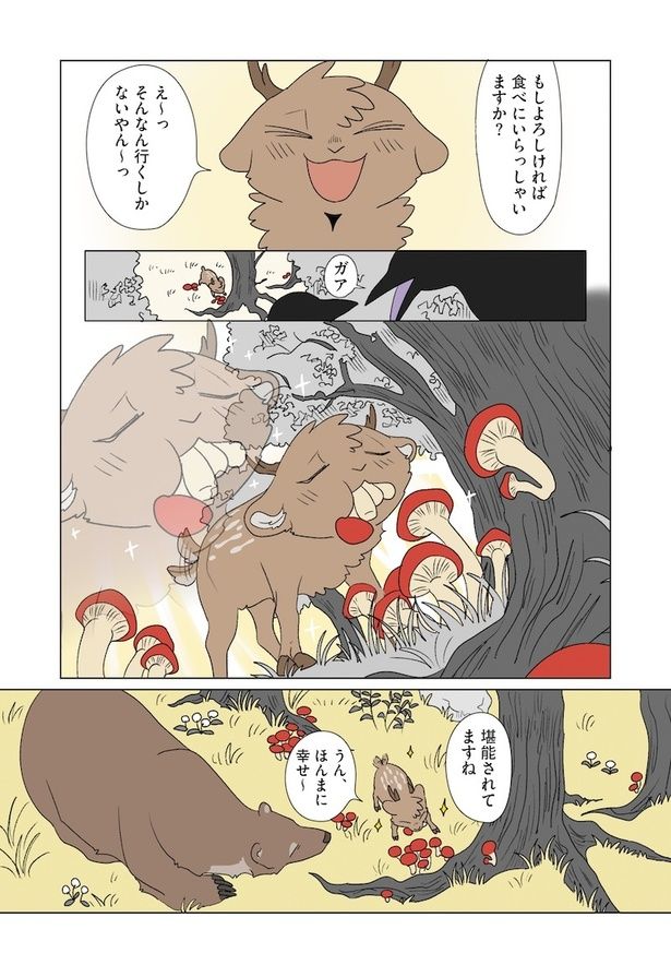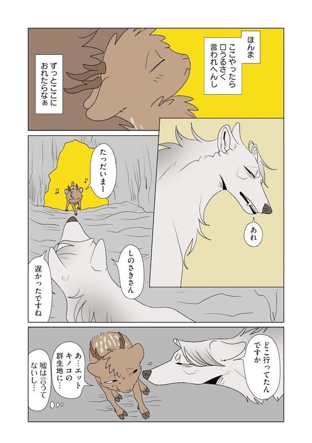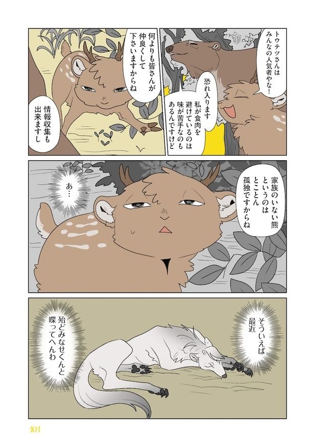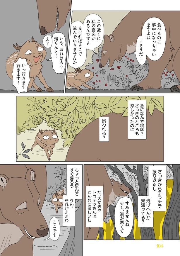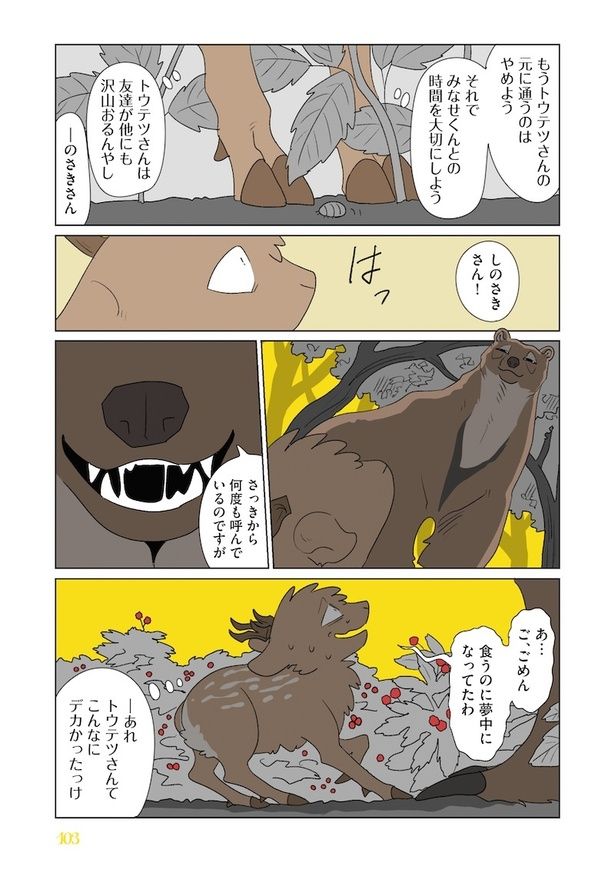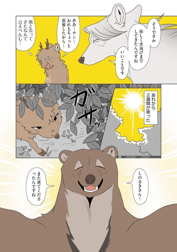 滅多に肉を食べないというクマに助けられて意気投合。彼の縄張りで何度も会うようになるが…/ふたりのけもの⑩