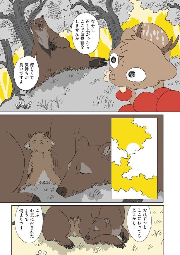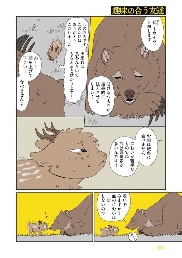 3. 滅多に肉を食べないというクマに助けられて意気投合。彼の縄張りで何度も会うようになるが…/ふたりのけもの⑩
