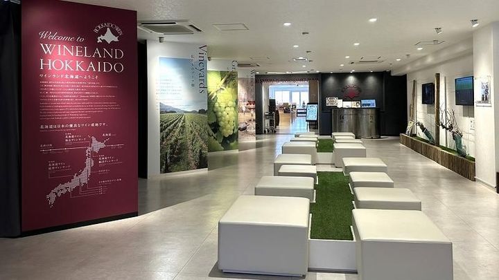 入ってすぐのホールには、ワインの苗木が展示され、パネルやVTRで北海道ワインさんのワイナリーの風景や、醸造過程などが紹介されています。