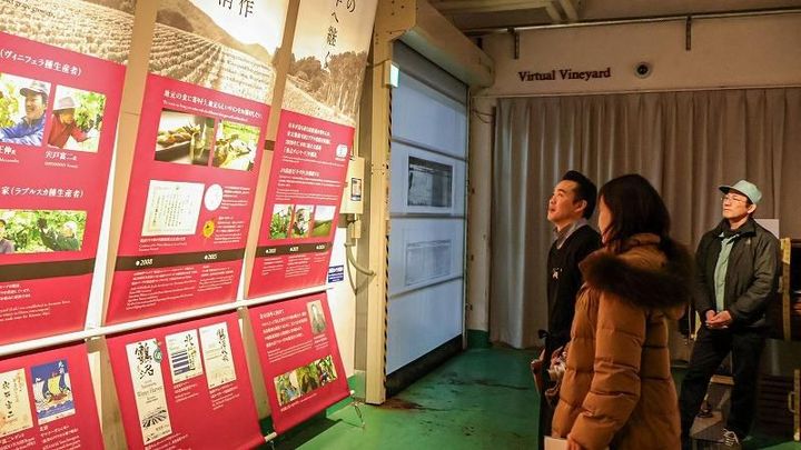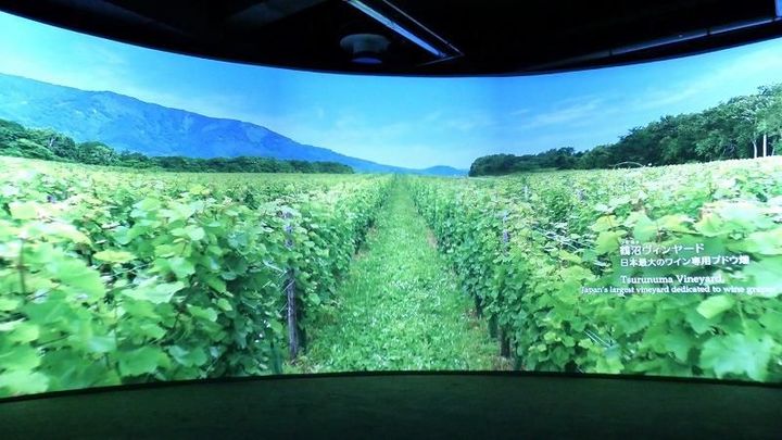 その後、圧巻の4Kシアターで、「北海道ワイン」が浦臼町に展開する日本最大の敷地面積(447ha)を誇る、直轄農場「鶴沼ワイナリー」の四季を鑑賞。