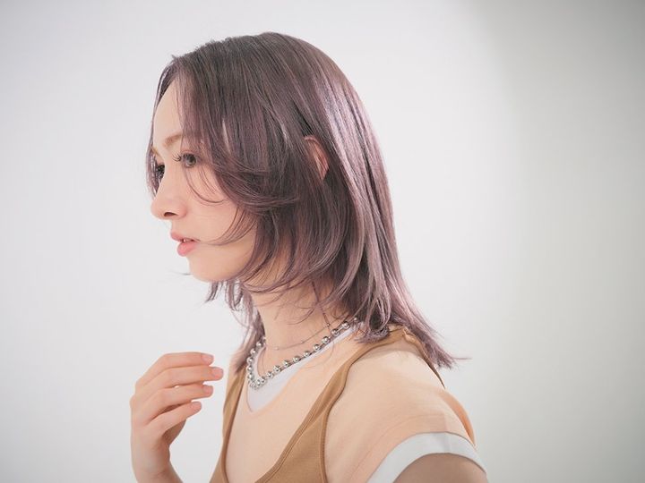 3. 【ミディアム】髪のツヤも肌の明るさも叶うアンニュイモーヴカラー
