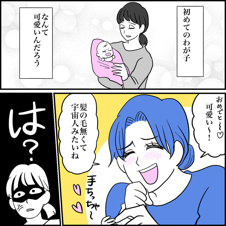 ……と、怒りに震えるママの気持ちもわからなくはありません。でもちょっと落ち着いて。よく聞いたら、友人はお子さんのことを可愛いと褒めていますから、きっと悪気はなかったんですよ。ただまあ、宇宙人はイヤかもしれませんね。言葉のチョイスにはお気をつけください。