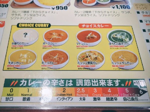カレーの辛さは自由に選べます! 0甘口 1普通 1.5辛口 2インディアン 2.5大辛 3激辛 4超激辛 5自己責任.....