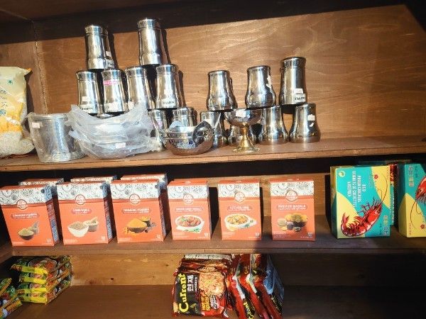 お店に入ってすぐの棚には食器や、食品、スパイスなど購入できるものもありました。お家で本格的なカレーを作ってみるのもいいですね!