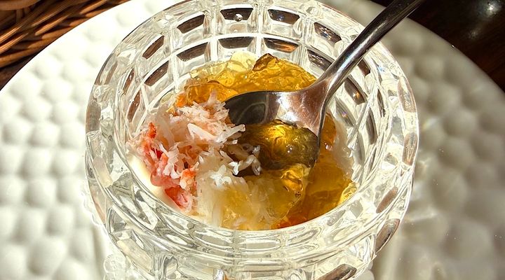 パンナコッタのぜんざい、アジアな感じのデザートだけど、美味しい!