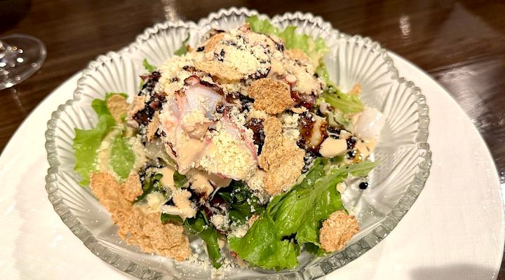 海の幸のサラダ…タコ、海老、イカ、アワビ…海鮮たっぷりで、幸せ過ぎます♪