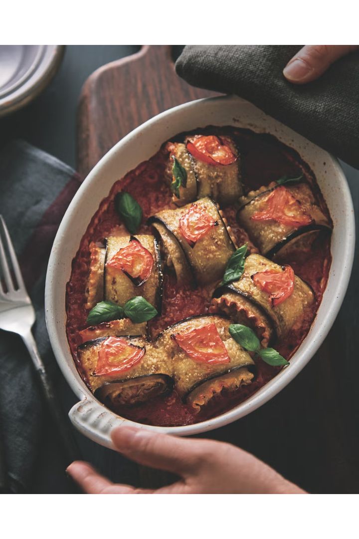 大皿料理の定番、ラザニアを取り分けやすくアレンジした技アリレシピ。挽き肉とクリームチーズで作る濃厚ソースを、ラザニアとなすでくるっと巻いて一口サイズに。見た目もかわいらしく、食べやすさも抜群だ。