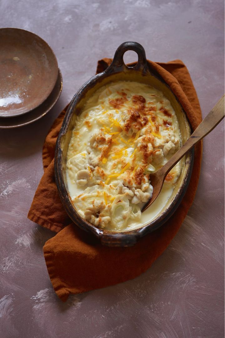ホワイトソース×白子のダブルのクリーミーさがたまらない大人のごちそうグラタン。市販のホワイトソースに、白みそと柚子の皮を加えて和風テイストに。濃厚な味わいの中に柚子のさわやかな香りが広がり、冬らしい味わいに。