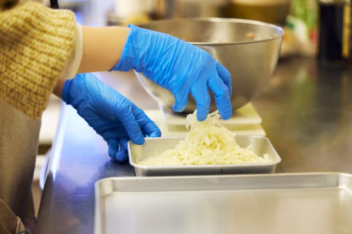 切り揃えた皮はきちんとバラしておくことで、タネにまぶしやすくなります。
