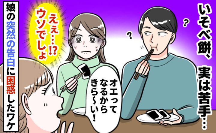 そんな私に対し、夫はいそべもちが大好きで、おもちつきするとそればかり食べています。あるとき夫が娘にいそべもちをすすめたところ、衝撃の事実が判明しました。