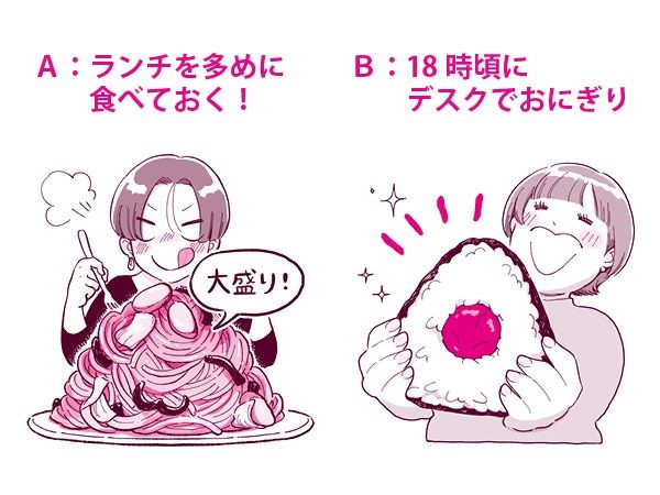 【正解はB】食事の間が長く空く場合は主食を軽く先取り