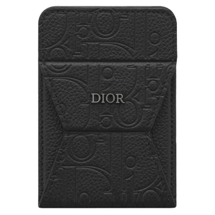エンボス加工で「ディオール オブリーク」モチーフを配したカードホルダーは、スタンドにもなる優秀な一点。