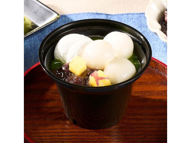 丸七製茶監修の抹茶白玉ぜんざいパフェが新登場!静岡県産一番摘み抹茶を使用したムースにホイップクリーム、抹茶ソース、白玉3個、さつまいもダイス、粒あんをトッピングし、ぜんざい風のパフェに仕立てました。年始にぴったりのデザートカップです。 JANコード4907174139863 カロリー:224kcal