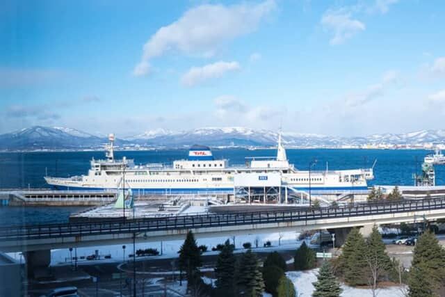 窓から見える船は昭和63年(1988年)の営業終了まで運行していた「函館市青函連絡船記念館 摩周丸」。人や車はもちろん貨物列車も運び、北海道と本州をつなぐ物流の要としての役割を担っていました。船内見学は驚きの連続なのでおすすめです。