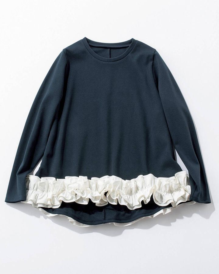 ②ジャージー素材で楽ちん可愛い「裾フリルプルオーバー」