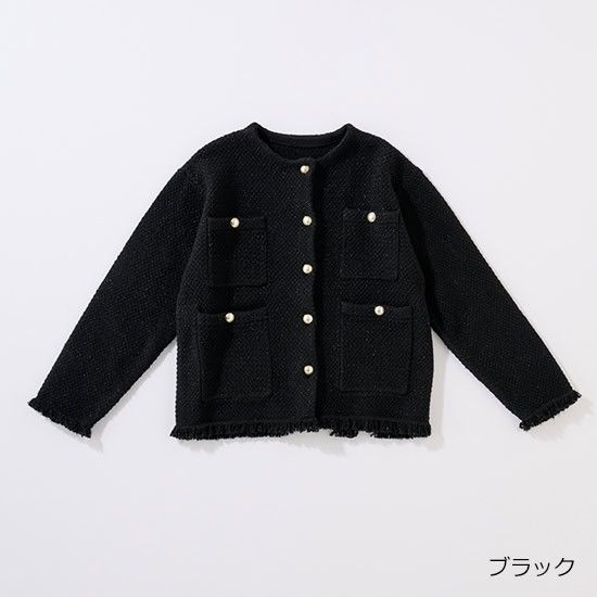 ①羽織るだけでサマ見えを叶える「ツイード見えニットジャケット」