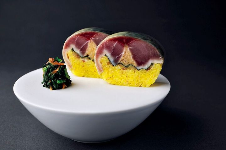 フランス出身のユーゴ・ぺレ=ガリックスさんは日本料理を学ぶために来日。京都「菊乃井本店」で日本料理を学び、東京・銀座「エスキス」で4年間料理長を務めたのち、2024年に独立。25年に『ミシュランガイド東京』の一ツ星を獲得しています。スペシャリテの一品である棒寿司はサフランとガリを使った酢飯に、3日間独自の手法で熟成させた鯖の組み合わせがユニーク。