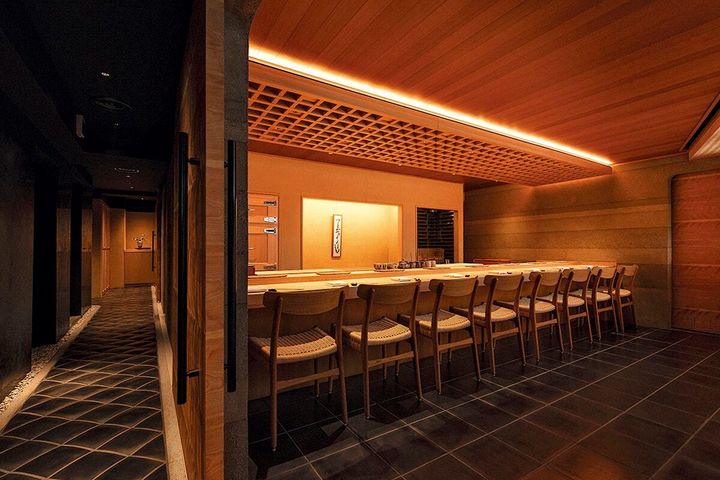 寺社建築にヒントを得たという凜としたしつらえや器使いの美しさもさることながら、特筆すべきは寿司。細かい仕事を施したいかに白樺の樹液を含んだ昆布水をひと塗りして旨みを引き出したり、穴子のツメに薬草酒「フェルネ・ブランカ」をわずかに加えて味に深みを加えたり。江戸前寿司の本質から外れず、その周縁を少しだけ拡げることで味わいを一層引き立たせることができるのは、海外で暮らした"外の視点"を持つからかもしれません。