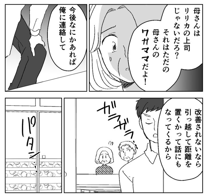 タツヤに「それは母さんのワガママだ」と言われ、私は頭が真っ白になってしまいました。ワガママ……? 私が……? 「改善されないなら引っ越して距離を置くかも」とまで言われてしまったのです。