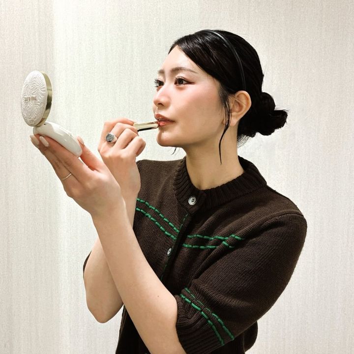 「一見、色味が濃く見えるルージュは、つけてみると透け感が絶妙。唇を華やかに見せられるお気に入りアイテムです。ぷるんと感がかわいいリップなので、リップスティック シアーと重ね付けも楽しんでいます」