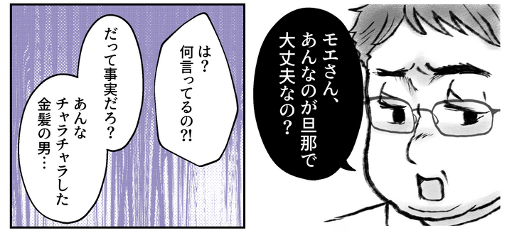 モエの結婚相手であるカナトさんの髪色を見て、ハルキは黙り込んでしまいました。