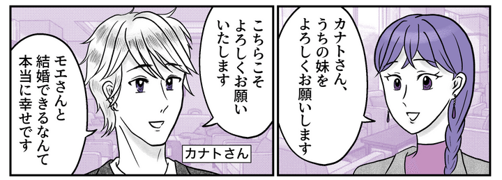 モエとカナトさんは遠方で結婚生活をスタートするので、しばらくは夫同士が顔を合わせる機会はほとんどないはずです。