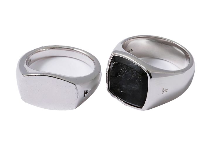 シンプルながら存在感のあるトムウッドのリングは、ラグジュアリーな時計や結婚指輪とのレイヤードにも相性GOOD。まずはシンプルなシグネットリングを。【右】ブラックリング¥80,500【左】シルバーリング¥57,500(ともにトムウッド/トムウッド 青山店)