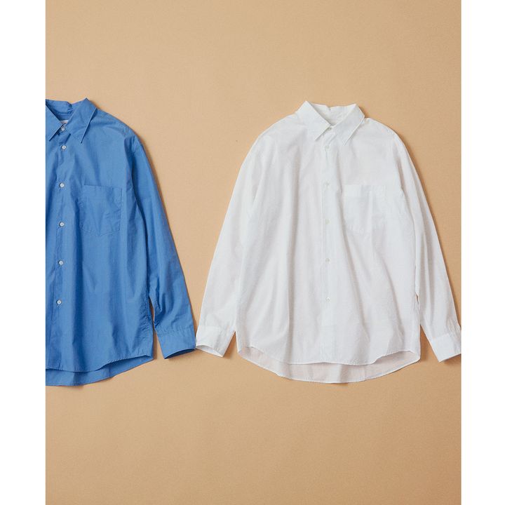 高級シーツに使用される生地で、着心地と上品さを両立したシャツ。サイズの概念にとらわれず、あらゆる体型にフィットする設計で贈り物にも選びやすい。スタンダードなシャツはシーンレスで活躍度大。シャツ各¥26,400(ともにグラフペーパー/グラフペーパー 東京)