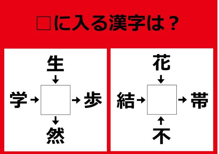 【漢字パズル】結□、花□、□帯、不□ □に入る漢字は何…!?