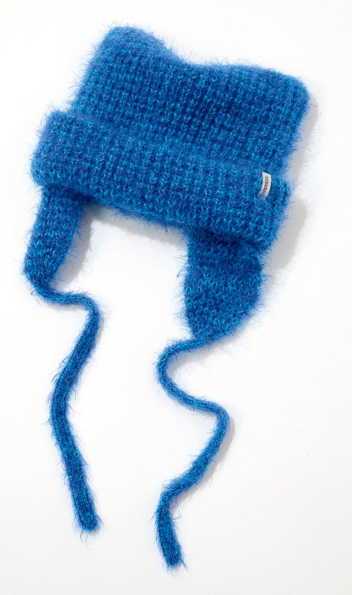 [上から]猫耳のローゲージニット。耳当てがよりファンシーな雰囲気に♡ ¥7,920/オーバーライド(オーバーライド 神宮前店)ニットならではの優しい編み地がスウェットに映える♡ 一気にラブリーに! ¥6,050/メリージェニー、きらめく繊細なラメ糸を使用。頭に巻いても、つけ襟のように首元に巻いても。¥4,950/カオリノモリ(オーバーライド ルミネエスト新宿)、冬のおしゃれに遊び心とぬくもりを添える、オールニット素材のイヤマフ。¥4,950/オーバーライド(オーバーライド 神宮前店)、柔らかなニット素材で仕上げたカジュアルなバケットハット。ロングシーズン使えます。¥5,500/ニューエラ