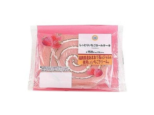 しっとりと焼き上げたスポンジで、いちごクリームを巻きこみました。福岡県産あまおう苺のジャムを使用したクリームです。
