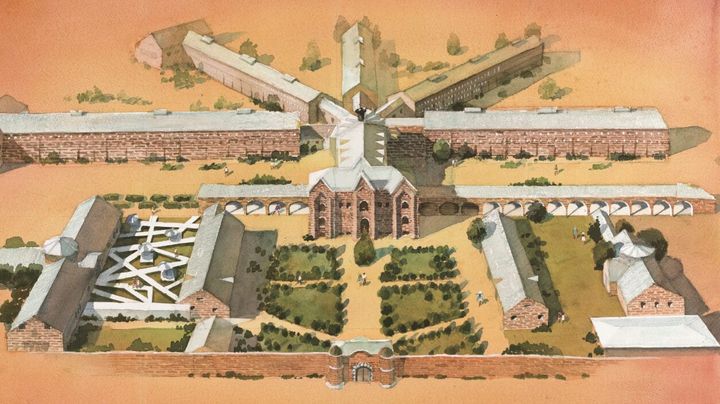 ハビランド・システムと呼ばれる、看守所から5つの棟が伸びる独特の構造。