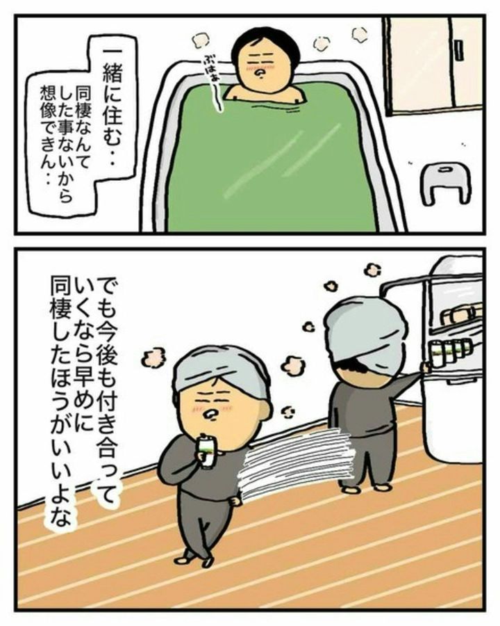主人公・エクボさんは、シゲオさんから「同棲」を提案されましたが、すぐに返事をすることができませんでした。大切なことですので、悩むのは当然ですね。