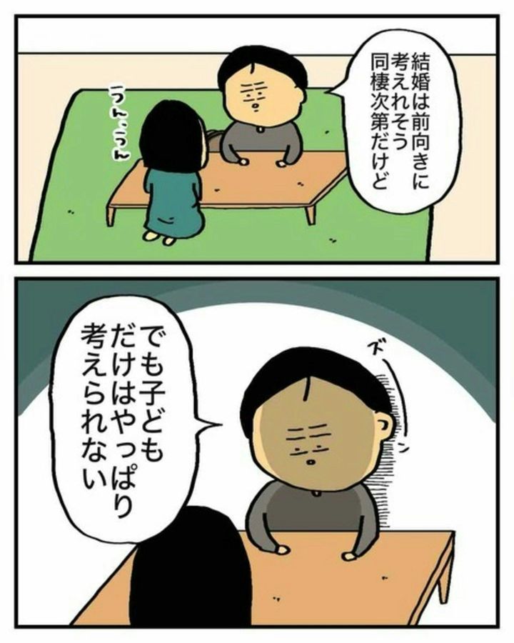 子どもについて、結婚前からパートナーと話し合っておくことは、非常に大切なことですね。お互いを大切に想い合っているからこそ、真剣に向き合う2人にエールを送りたくなる作品です。