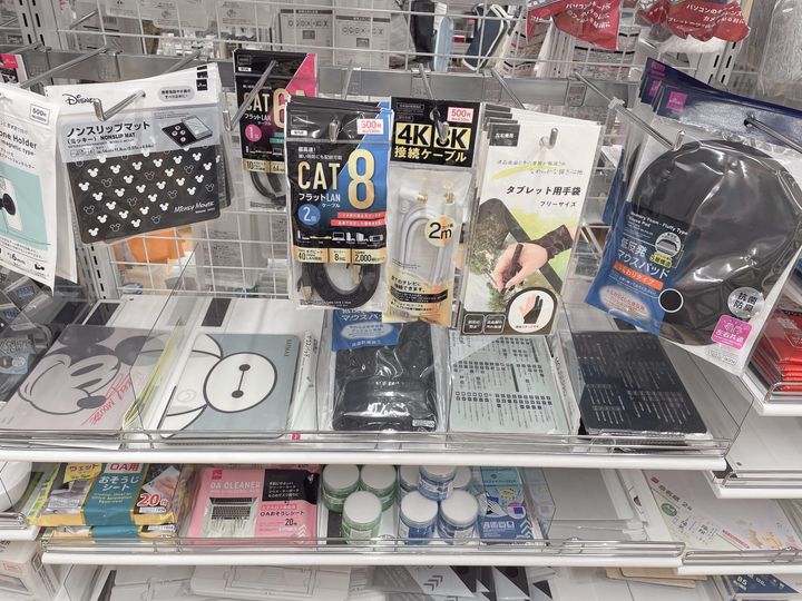 ダイソーのPCアクセサリーコーナーには、今回比較した製品が並んでいます。