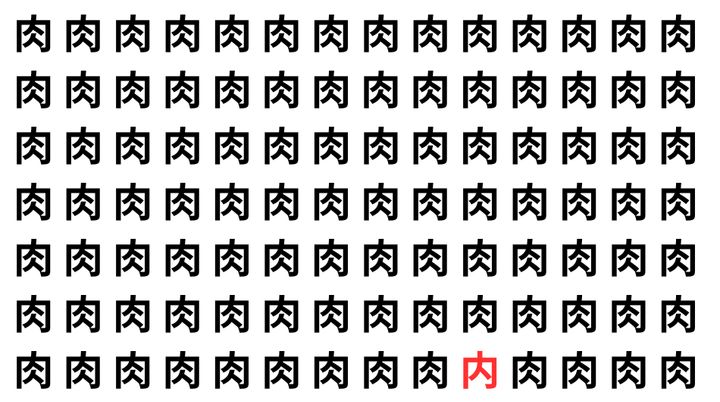 たくさんの「肉」の中に、よく似た別の漢字が1文字だけ隠れています。