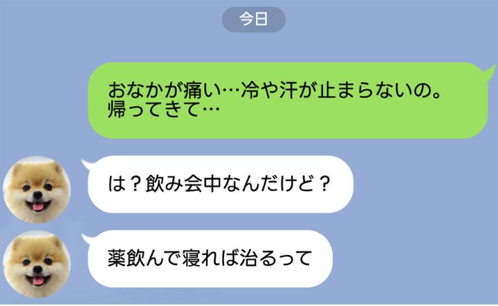 3. 夜中に腹痛で立ち上がれない…飲み会中の夫にSOS「大げさ!帰らないとダメなの?」翌朝夫は