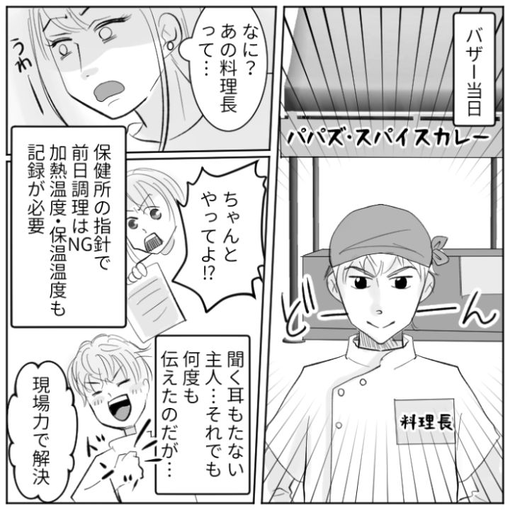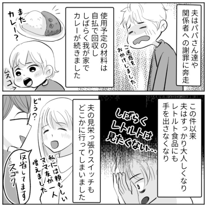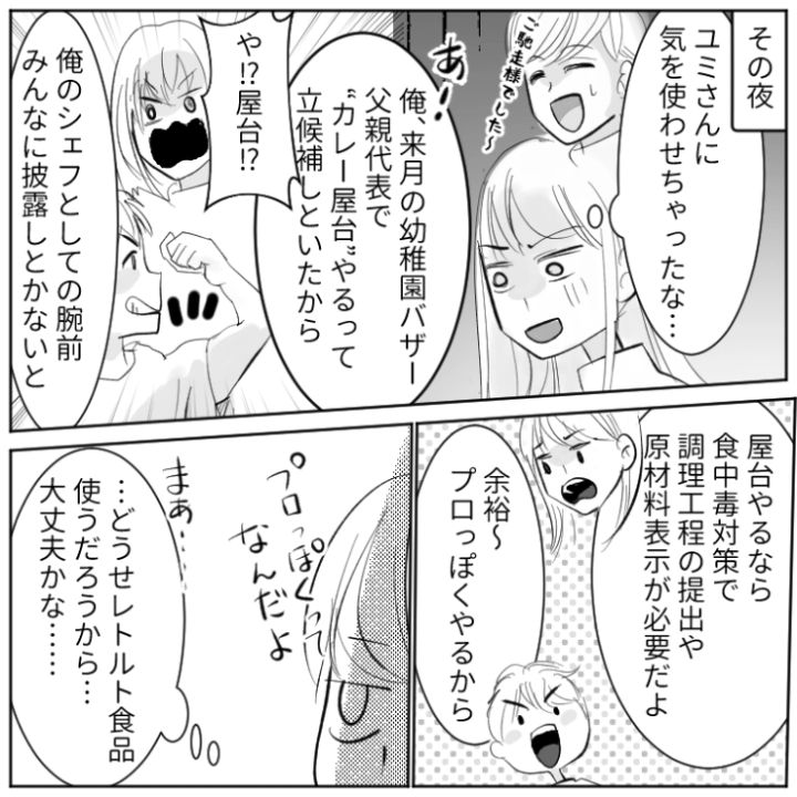 「俺の料理は本格的でほぼプロ」一切料理はできず、レトルト食品だけの夫が幼稚園のバザーでカレー屋をやると言い始めて…
