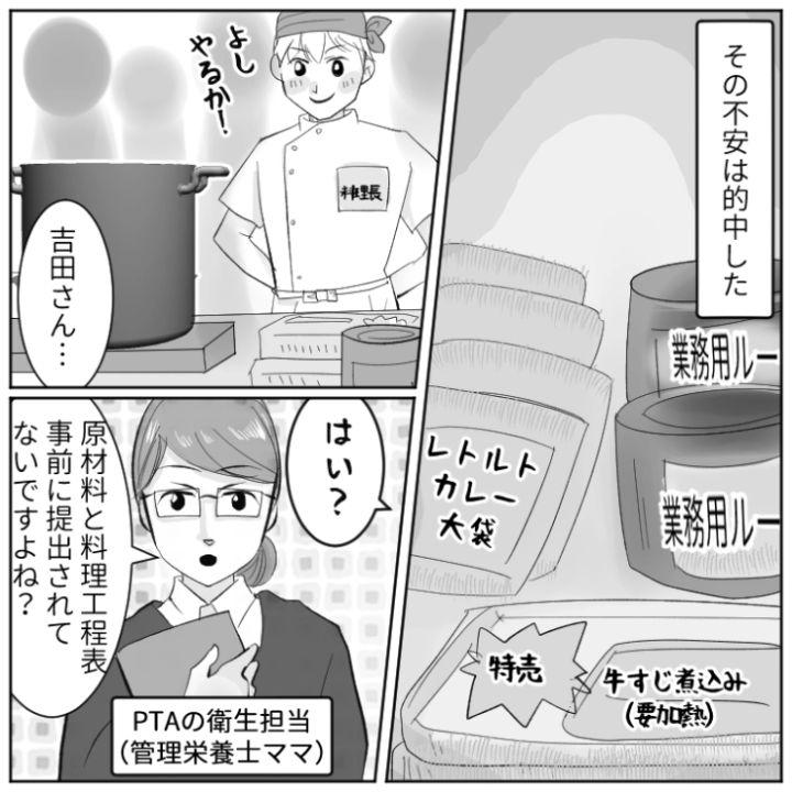 3. 「俺の料理は本格的でほぼプロ」一切料理はできず、レトルト食品だけの夫が幼稚園のバザーでカレー屋をやると言い始めて…
