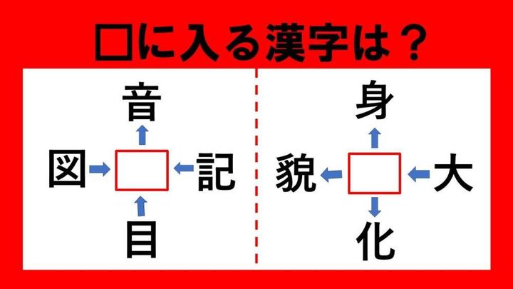 【漢字パズル】□音、図□、目□、記□に入る漢字はなんでしょう?