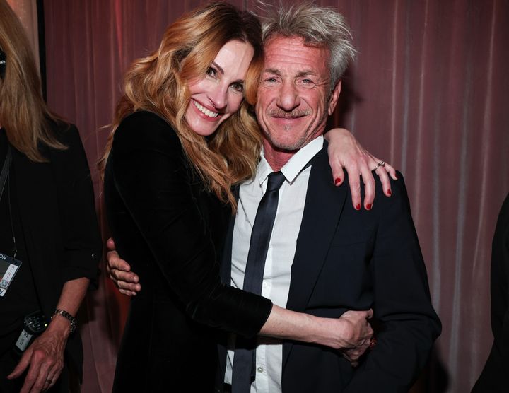 バックステージでは珍しい2ショットも披露し映画ファンを喜ばせていたが、喫煙騒ぎで炎上中。ジュリア・ロバーツ(Julia Roberts)、ショーン・ペン(Sean Penn) Christopher Polk/2026GG / Getty Images