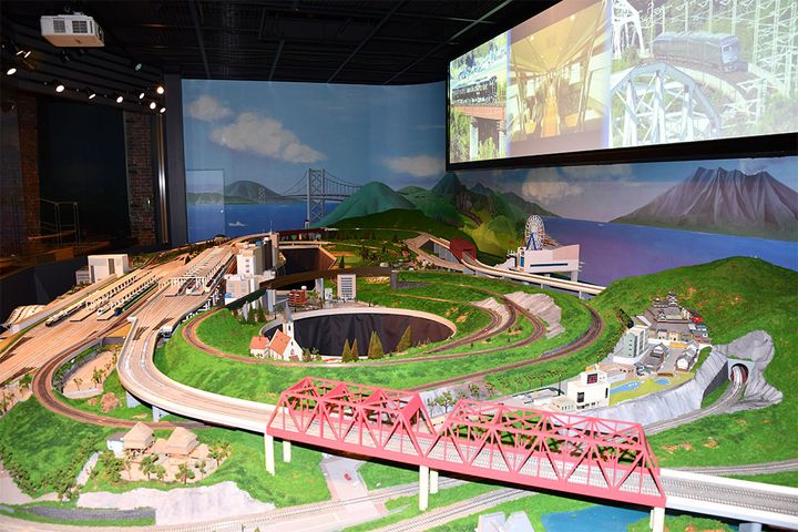 「九州の鉄道大パノラマ」は、九州中の人気列車が繰り広げる鉄道模型のショーランド。お客様運転(有料)もできる。CHECK