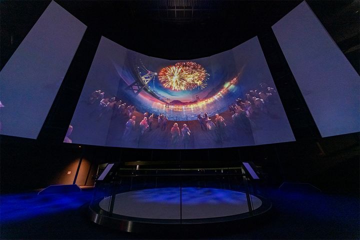 ドーム径25mのスクリーンで臨場感あふれる映像を堪能できる「ドームシアター」。音楽と映像が融合したエンターテインメント性の高い番組や、アニメとのコラボ、宇宙の最新情報を盛り込んだ学習番組など、多彩なプログラムが用意されている。