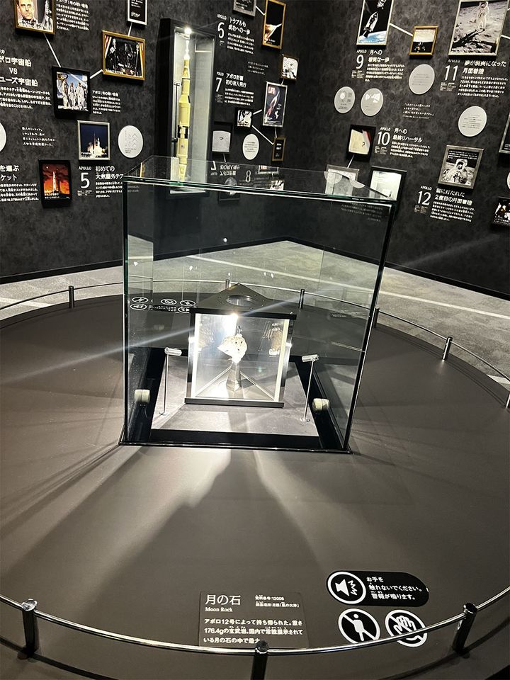 3階の無料エリア「スペースラウンジ」では、1969年にアポロ12号が採集した本物の「月の石」が展示されている。国内の常設展示では最大サイズ!