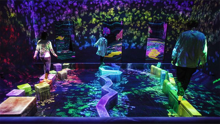 「チームラボフォレスト 福岡 – SBI証券」 みずほPayPayドーム福岡隣, 福岡 ©️ チームラボ光あふれるデジタルの森『チームラボフォレスト』は、冒険気分を味わえるミュージアム。50種類以上の動物を捕まえて自分のコレクション図鑑をつくる「つかまえて集める森」と、跳ねるボールや揺れる床など、世界を身体で認識し立体的に考える「運動の森」で構成されている。また、「スケッチファクトリー」では「グラフィティネイチャー」で描いた絵を、缶バッチ、タオル、Tシャツなどにして持ち帰ることができ、お土産にもぴったり!